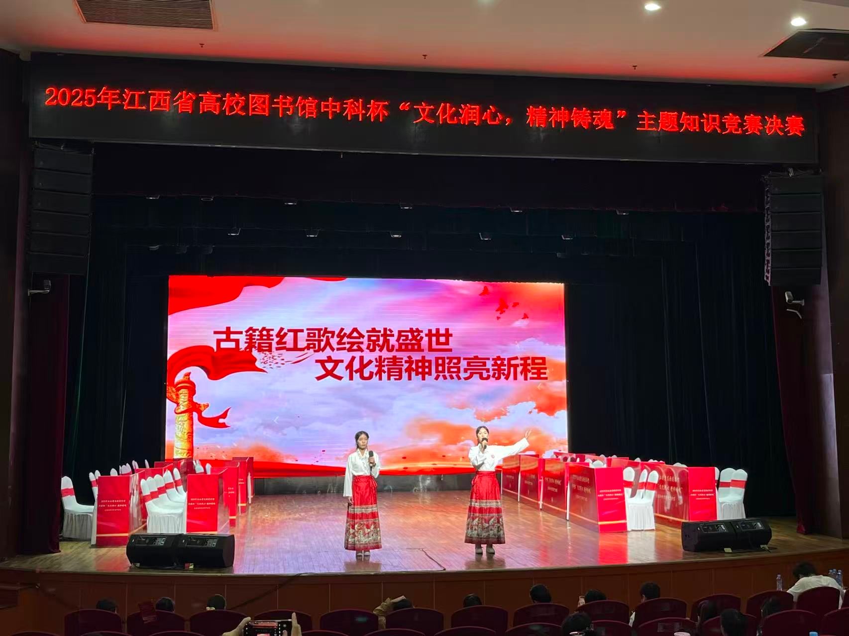 11月8日下午,江西省高校图书馆中科杯“文化润心 精神铸魂”主题知识竞赛决赛在南昌大学前湖校区音乐厅顺利举行。本次竞赛由江西省高等学校图书情报工作委员会主办、南昌大学图书馆承办、中科软股教育科技(北京)股份有限公司协办。大赛吸引了全省16所本科高校参与,历时数月,分为线上知识竞赛(初赛)和线下主题活动(决赛)两个阶段。我校图书馆高度重视此次赛事,通过线下海报宣传与线上微信公众号推送相结合的方式,广泛动员学生积极参与校内初赛。...